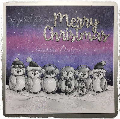I've coloured the little cuties with Copics using warm greys. They were cut out with a Spellbinders die which I distressed with some Vintage Photo ink from Tim Holtz. Around them image I've scattered some embossing enamel.