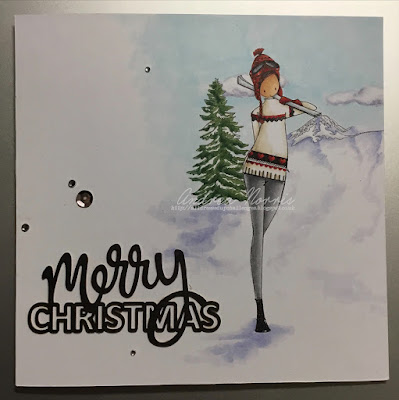 I think I must have had my monochrome head on in the last two cards I've made. But if you look closely there is a little pop of violet around the image. I've used my Copics to colour her with. Once coloured I fussy cut her out. I couldn't keep all her hair which was disappointing because my scissors were too fat to get around all the detailing.